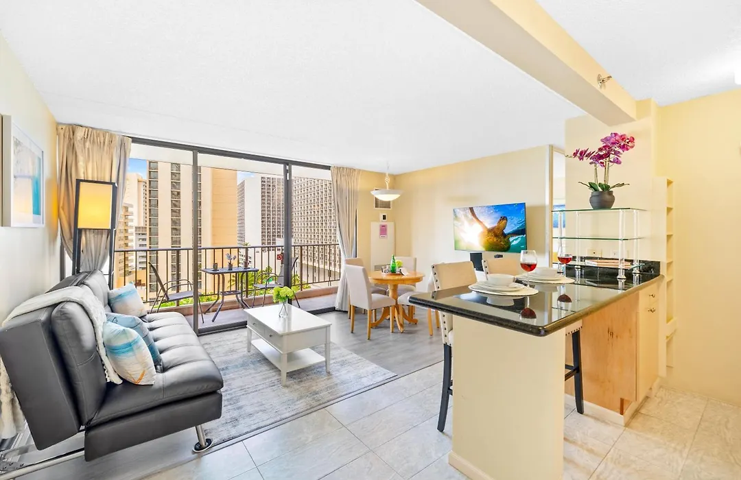 Lägenheten är belägen i distriktet Waikiki, bredvid Kalakaua Avenue. Honolulus centrum ligger omkring 4 km bort. Bland matställen finns det Banyan Breeze Coffee och Tiki's Grill & Bar belägna inom 5 minuters promenad från boendet.